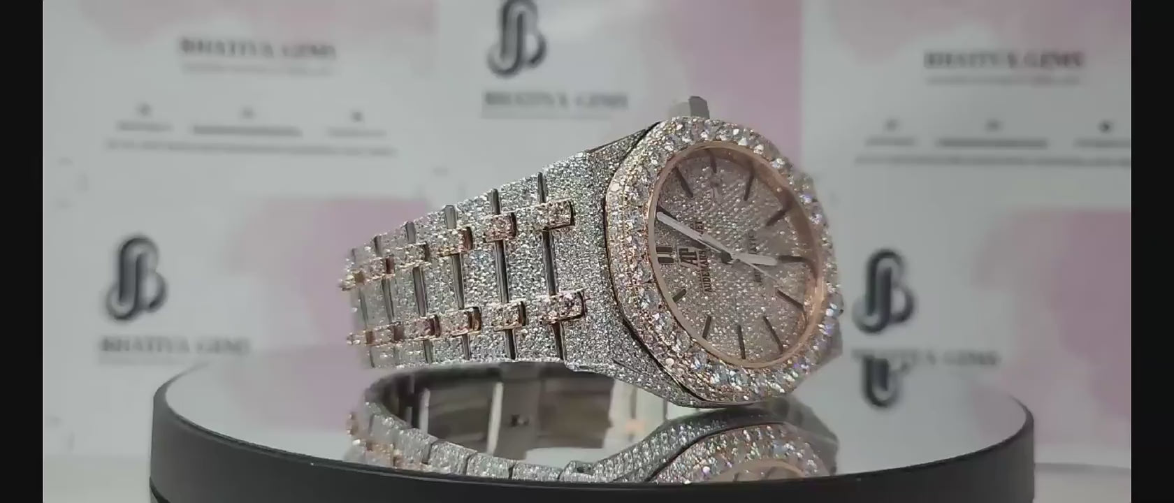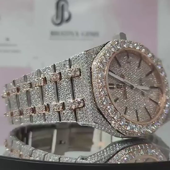Two Tone Dial Bling Automatic Mechanical Iced Out Unisex Moissanite Diamond Watch Tester Pass Original Box Included